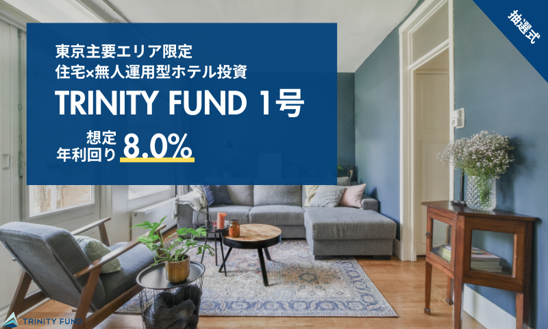 本ファンドは、アパートメントホテルとして順調な運用ならびに売却進捗により、早期終了を予定しております。 当初の運用終了予定:2026年5月31日 → 運用終了予定日:2026年4月10日 元本及び分配金償還予定日:2026年4月23日 なお、利回りは当初予定通り年利8.0%を予定しております。 TRINITY FUNDは、おかげさまでこれまでに組成した計7つのファンドが全て完売し、 約11億円を調達させていただきました。※2026年3月末時点 引き続き、皆さまからのご関心・ご期待にお応えできるよう努めてまいります。 今後とも変わらぬご支援を賜りますようお願い申し上げます。