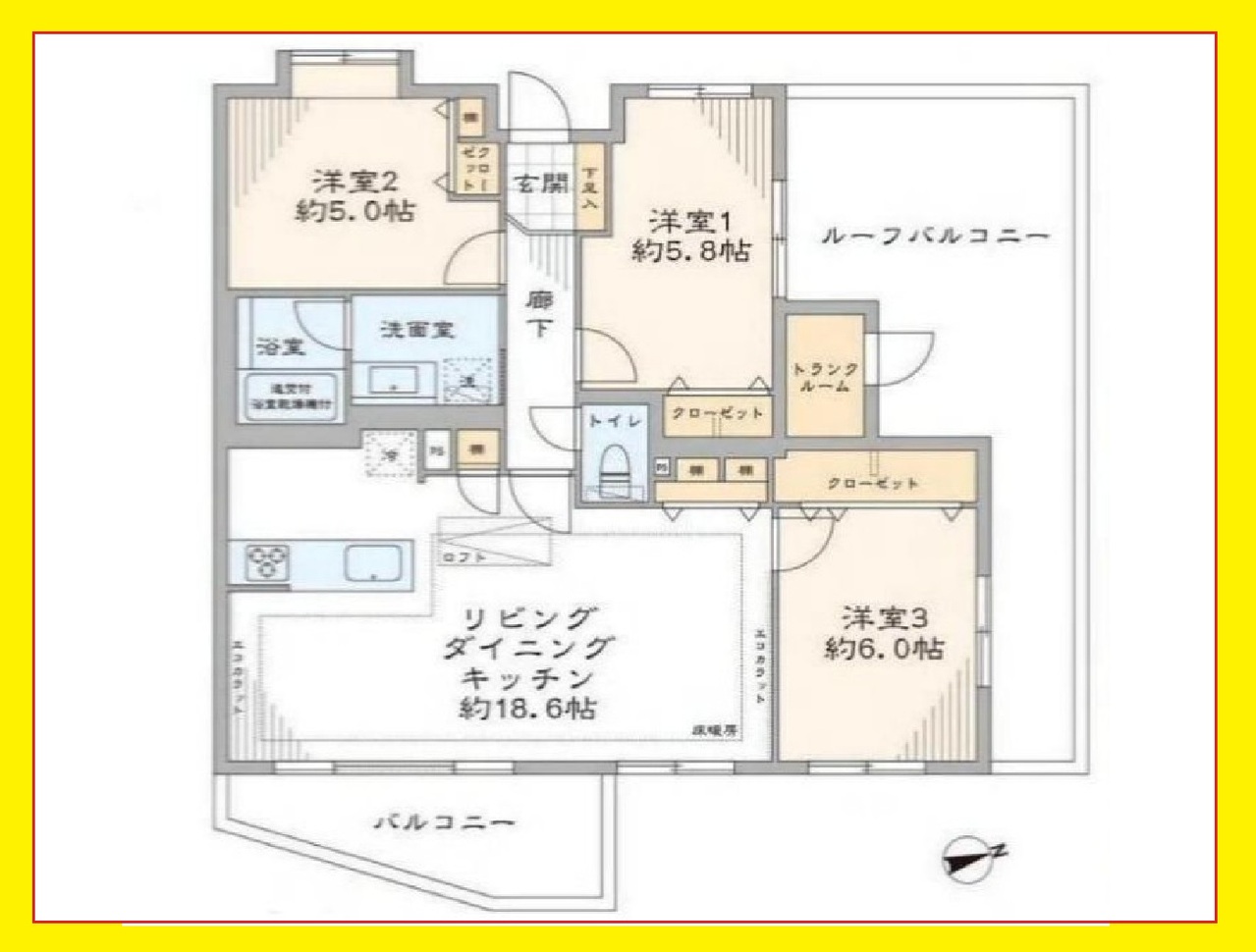 3LDK、専有面積79.03m2、バルコニー面積6.72m2
