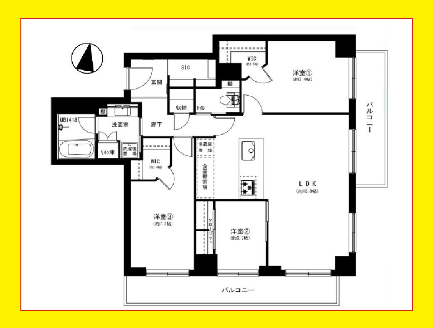バルコニー面積/向き