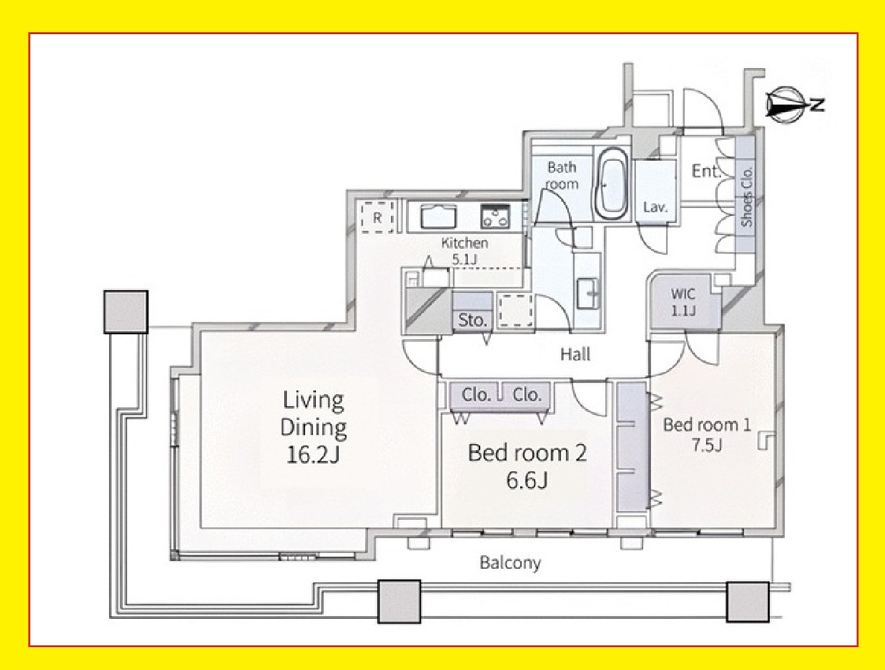 2LDK、専有面積86.3m2、バルコニー面積22.3m2