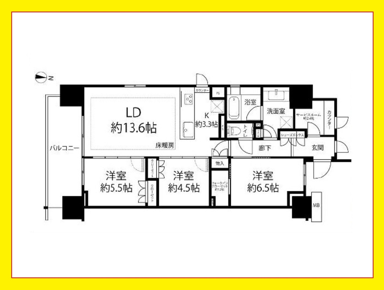 角住戸につき陽当たり良好