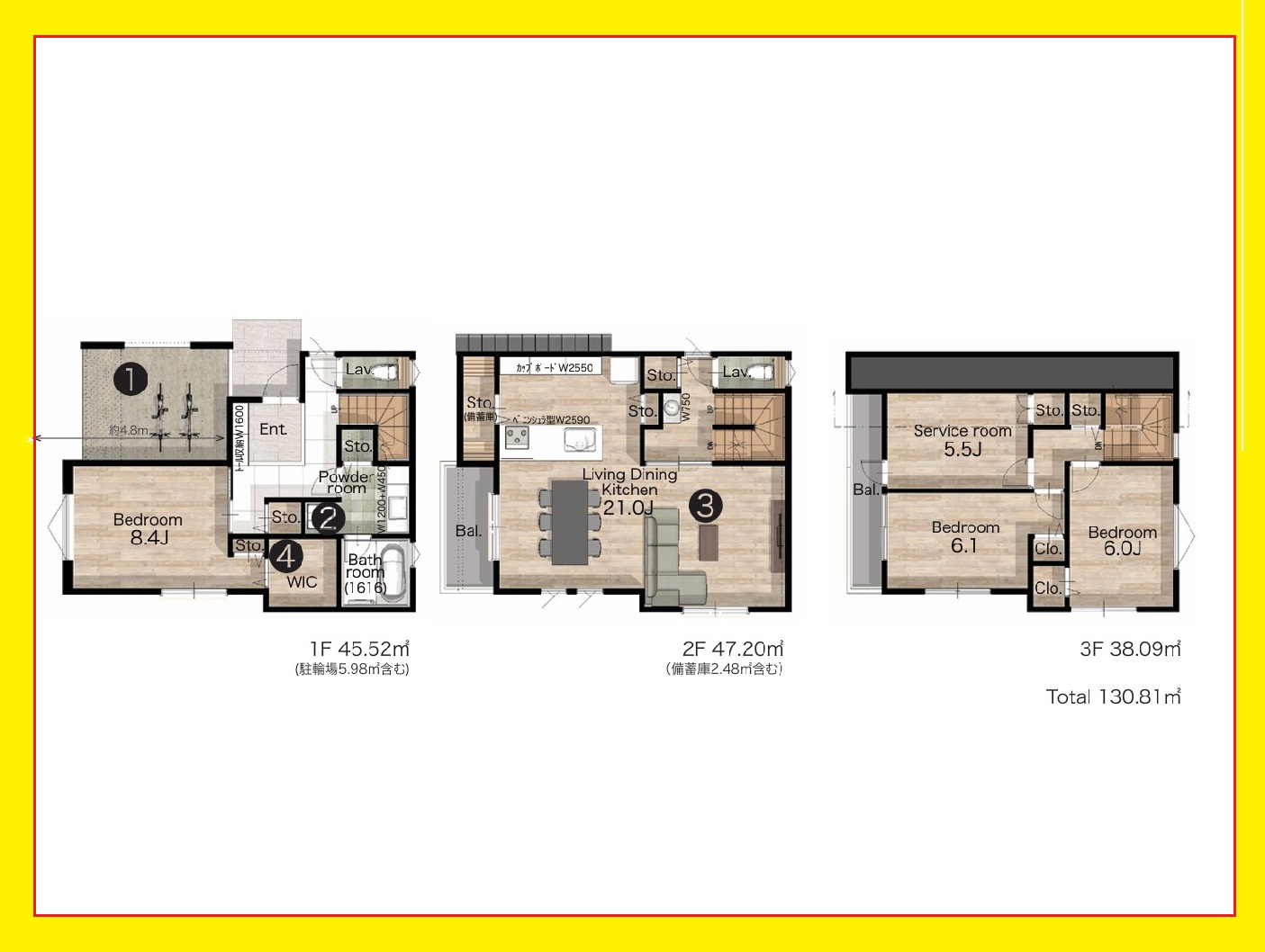 3LDK+S、土地面積77.75m2、建物面積130.81m2