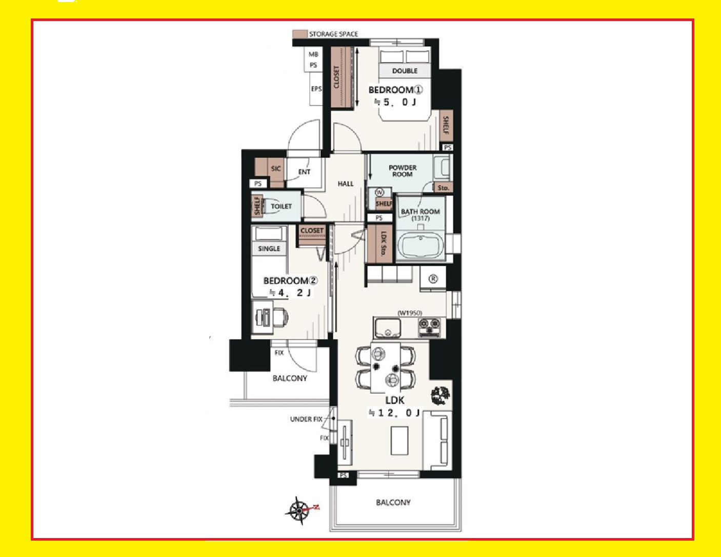 2LDK、専有面積51.62㎡、バルコニー面積8.21㎡