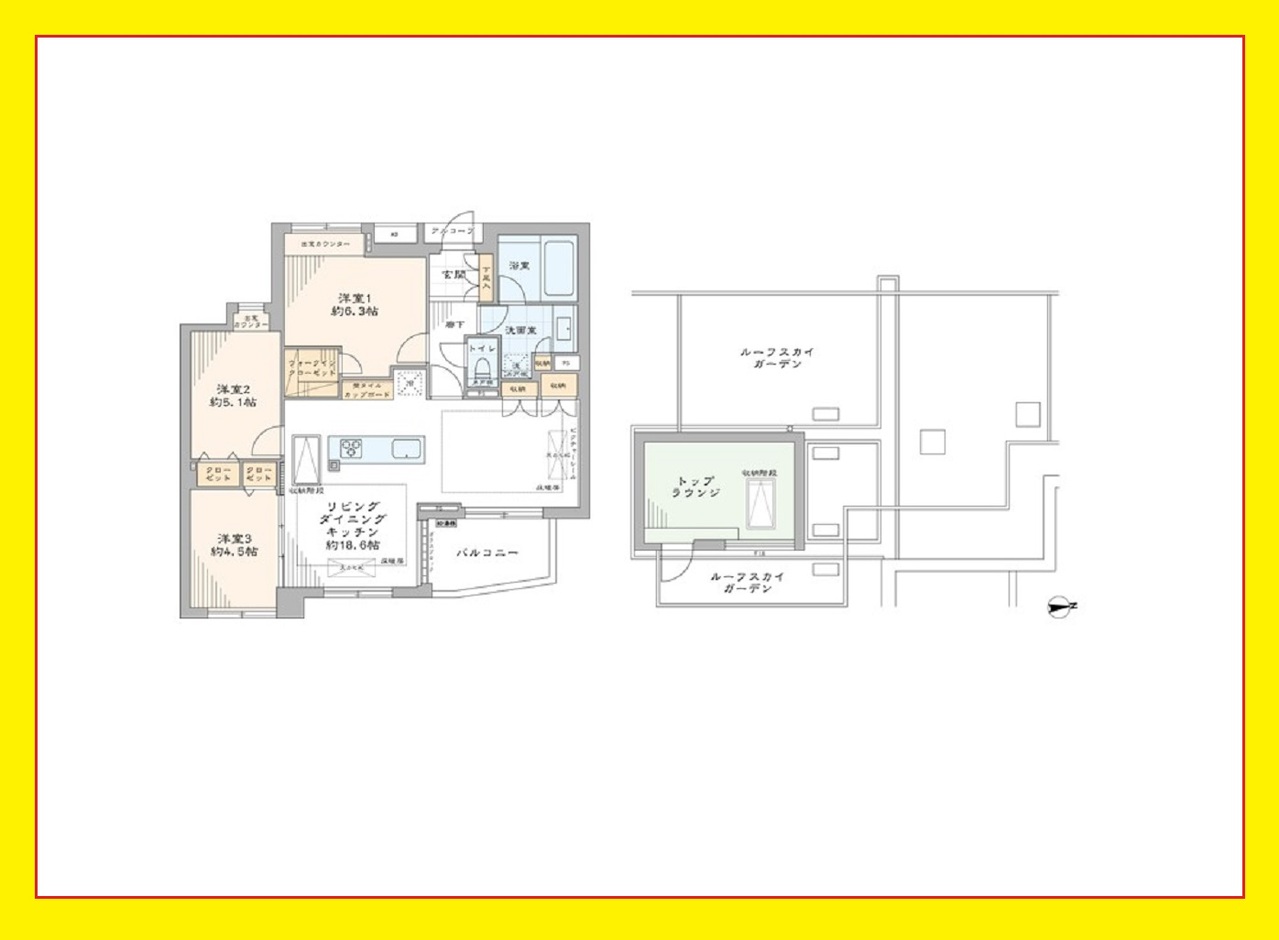 約50㎡のルーフスカイガーデン有♪