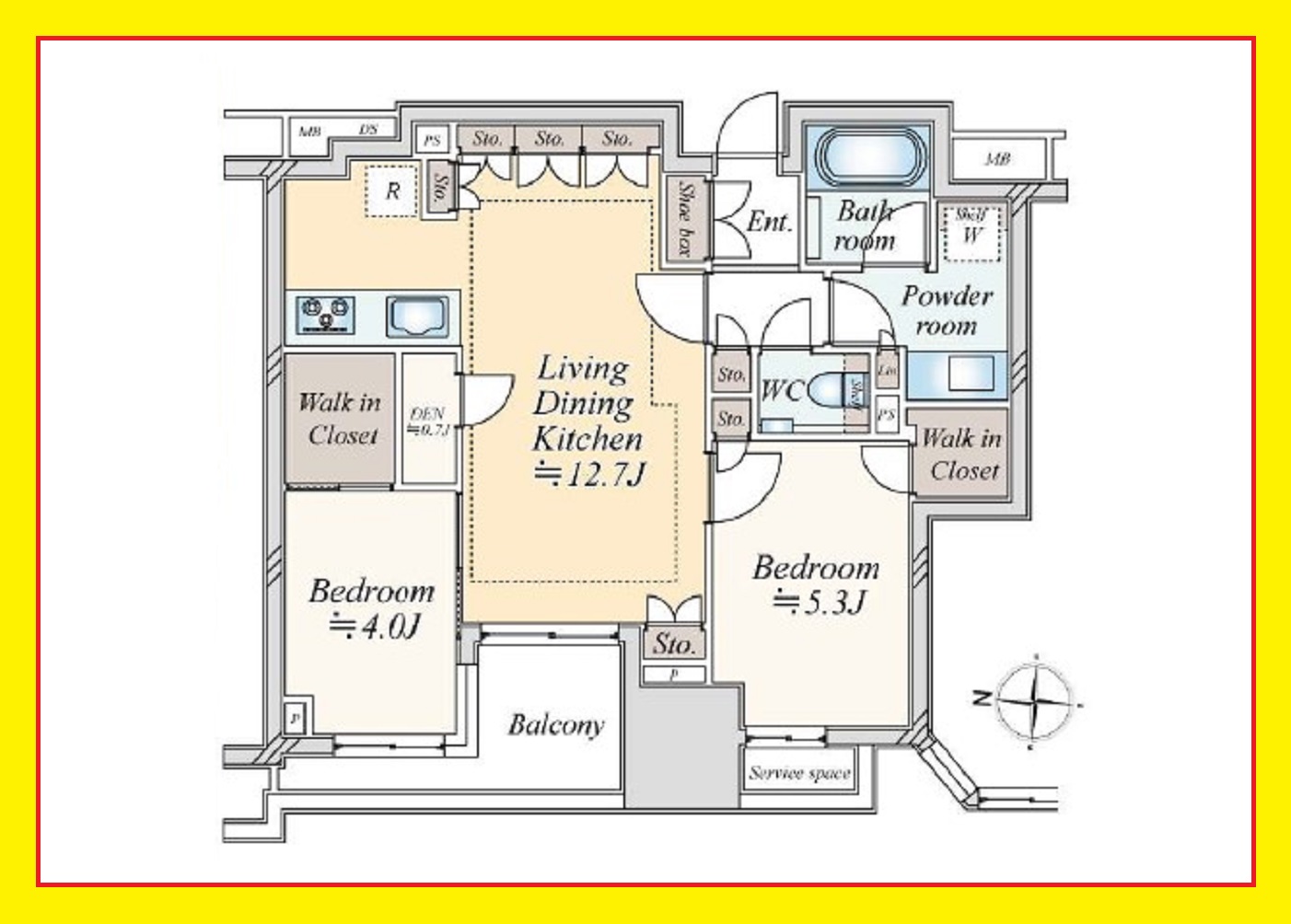 2LDK+2WIC リビング床暖房