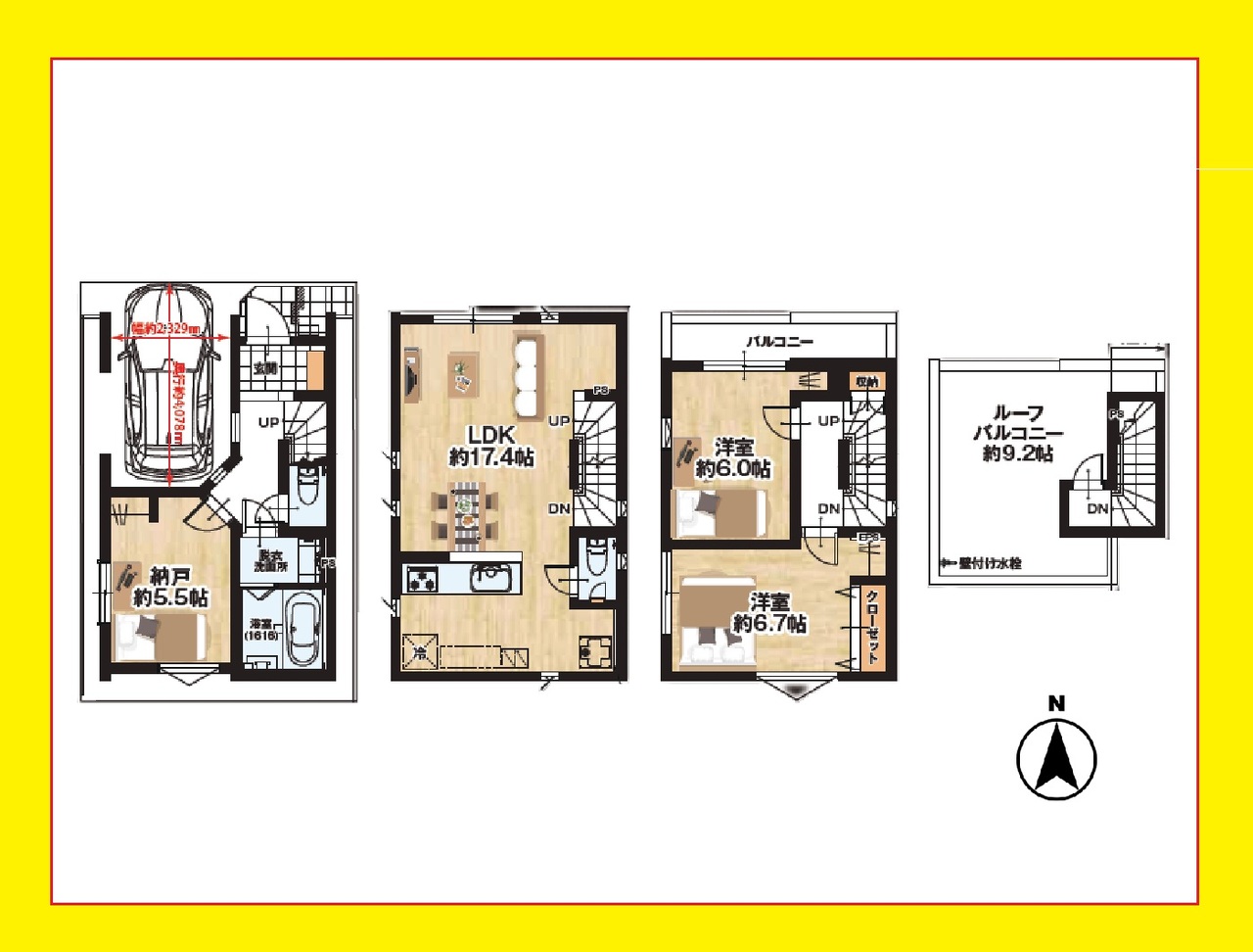 2SLDK+ルーフバルコニー+車庫